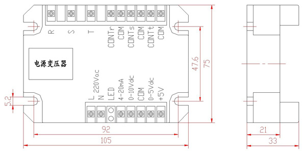 2、獨特的全兼容輸入控制模式, 0-5Vdc、0-10Vdc、4-20mA、1-5Vdc、0-10mA等自動方式均能適應(yīng),無須專門特別訂制,也可用電位器手動控制。輸入調(diào)節(jié)范圍寬,輸出調(diào)節(jié)精度高,三相對稱性好,抗干擾能力強。
