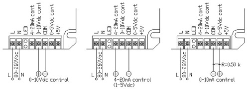 0-10Vdc自動(dòng)控制方式 4-20mA(1-5Vdc)自動(dòng)控制方式 0-10mA自動(dòng)控制方式