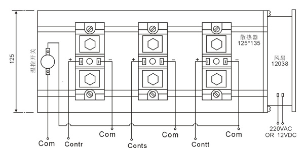 2、各功能端相對(duì)com端必須為正,com端為負(fù)極,如極性接反則模塊主回路輸出端可能失控。