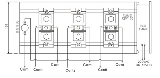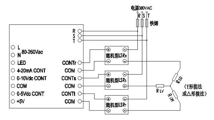 本系統(tǒng)主要應用于大功率電加熱控制、變壓器原邊調(diào)壓等場合,由一個三相移相觸發(fā)器LSJK-TSR型或LSJK-TSRG型、三個200A(或300A、400A)的隨機型固態(tài)繼電器SSR、一個A型散熱器、一個交流風扇12038組合而成,適合各類機械、礦山、化工、紡織、及其他機電一體化等領域。