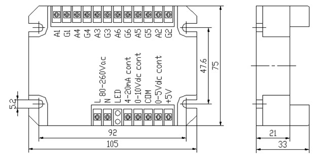 4、在某一時(shí)刻宜使用一種輸入控制方式,若兩種以上方式同時(shí)輸入使用,則一般為輸入信號(hào)較強(qiáng)的一種起主要作用。模塊可以手動(dòng)和自動(dòng)兩用,例如自動(dòng)接在4-20mA端,手動(dòng)接在0-5V端,可通過雙擲開關(guān)進(jìn)行功能切換。
