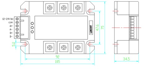 7、控制電壓12-24Vdc寬范圍,工作電流約25-45mA,其它電壓也可定制。輸入共陽或共陰可隨意接線,控制電流約3mA。