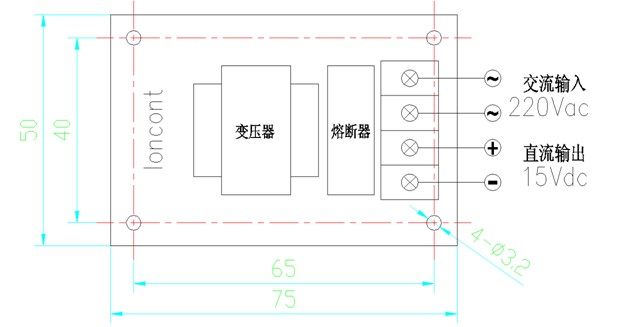 ㈥ 本公司有配套15V控制電源供應,外形尺寸:長75*寬50*高35 mm 。如下圖: